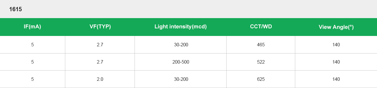 ·Light intensity:200-500mcd、30-200mcd